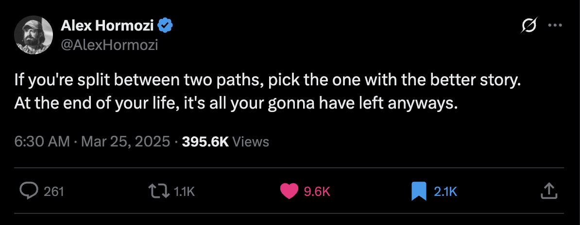If the risk is losing money I could’ve earned in big tech, but the reward is finding meaning at work, then give me a thousand lives and I’d still pick the adventurous startup life over being a soulless code monkey.
